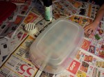 - A plastic Rubbermaid container, spraypainted black