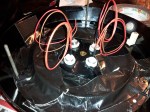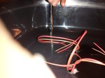 I cut the backpack in half to use the straps and backing, and just krazy-glued the lid of the Rubbermaid container to it (perfect fit!) We spraypainted the main part of the container and the various other bits, and while the spraypaint dried, we stripped the actual motor out of the blower. Once dry, we glued everything on and drilled some holes to put the case onto the container with the existing mounting screws. We drilled holes and stuck the 4 LEDs into the back and wired them up into the Arduino. The CPU fan and Arduino run off the 9V battery – the CPU fan gives a nice hum sound to the whole thing, and looks cool. The neutrino wand attaches to the side of the pack with tie straps and velcro so it’s easy to take on and off.